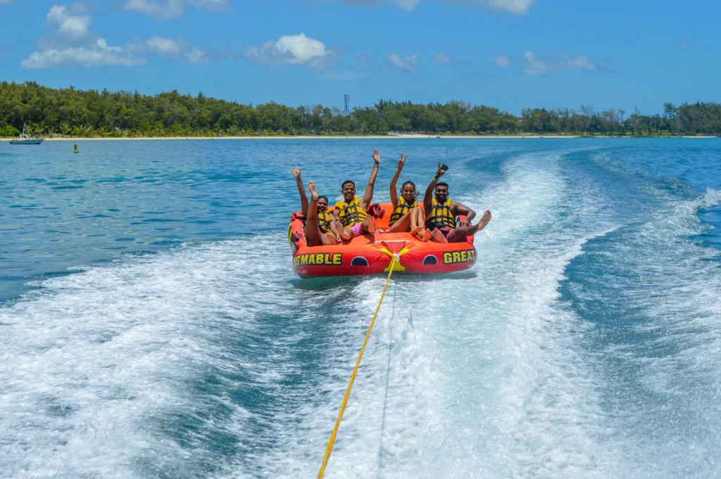 If you’re a thrill-seeker, get ready for one of the most adrenaline-packed activities in Mauritius! Hold on tight as you’re towed behind a speedboat on a giant inflatable tube, bouncing and sliding across the lagoon at high speed. This is the perfect ride for adventure lovers!